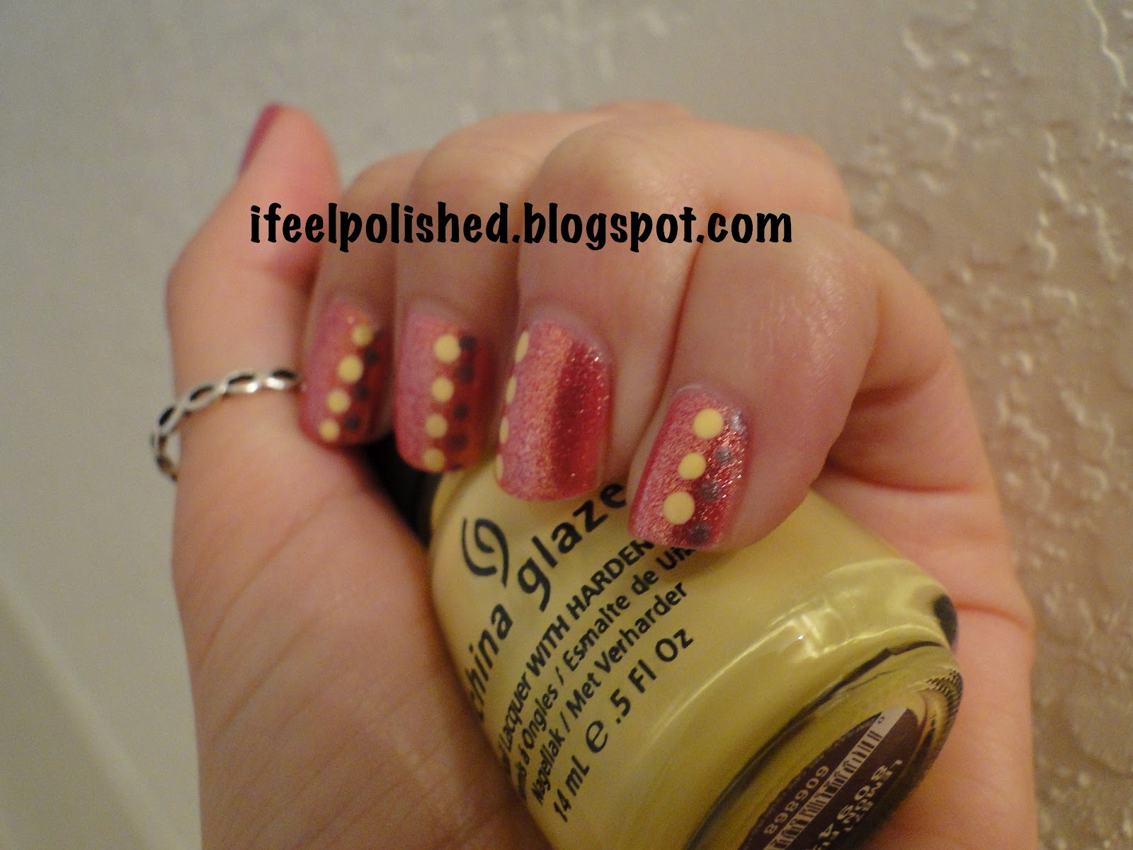 I know I'm pretty much talking to myself here, but I still feel obligated to begin this post with an apology. I somehow managed to NOT take any sufficient pictures of my first Easter manicure. Yes, my first one, since I did two. My students (mainly my girls) love seeing my nails, so I wanted to be sure I polished my Easter nails before Thursday, since there was no school on Friday. Consequently, I polished my Easter nails on Wednesday. Couple that with lots of baking and laundry, and I managed to chip one nail by Saturday night. I also swatched Zoya Apple onto a plastic nail on Saturday night and I somehow managed to get a little bit of it on my thumb! Anyways, I'm completely anal and one chip and a green splotch means I had to redo the whole manicure. For the first manicure, I used China Glaze Fast Track, some pastel colored polishes and a dotting tool, and then I finished it up with Essie Matte About You to make is Easter egg-like. Here's the only acceptable picture I took: