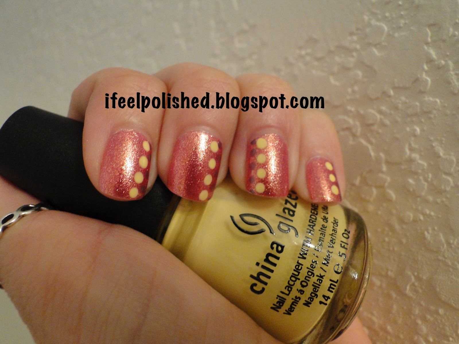 I redid my nails on Saturday in preparation of spending Sunday with some good friends! For this manicure I used Zoya Rica (from the Sunshine collection, which is to die for!), China Glaze Lemon Fizz, and Zoya Adina. I also used a dotting tool for this manicure. I received a ton of compliments on Sunday and at work today, so this one gets a thumbs up! I took all of these without flash, but since I got home as the sun was setting, I did have to have the light on!
