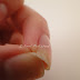 Having heard bits and pieces of information about using tea bags to repair nails, I gave it a try. I didn't actually look up how to do it...I kind of just assumed from what I had heard! This will work on a break in which the nail piece hasn't come off yet. Here's my break: