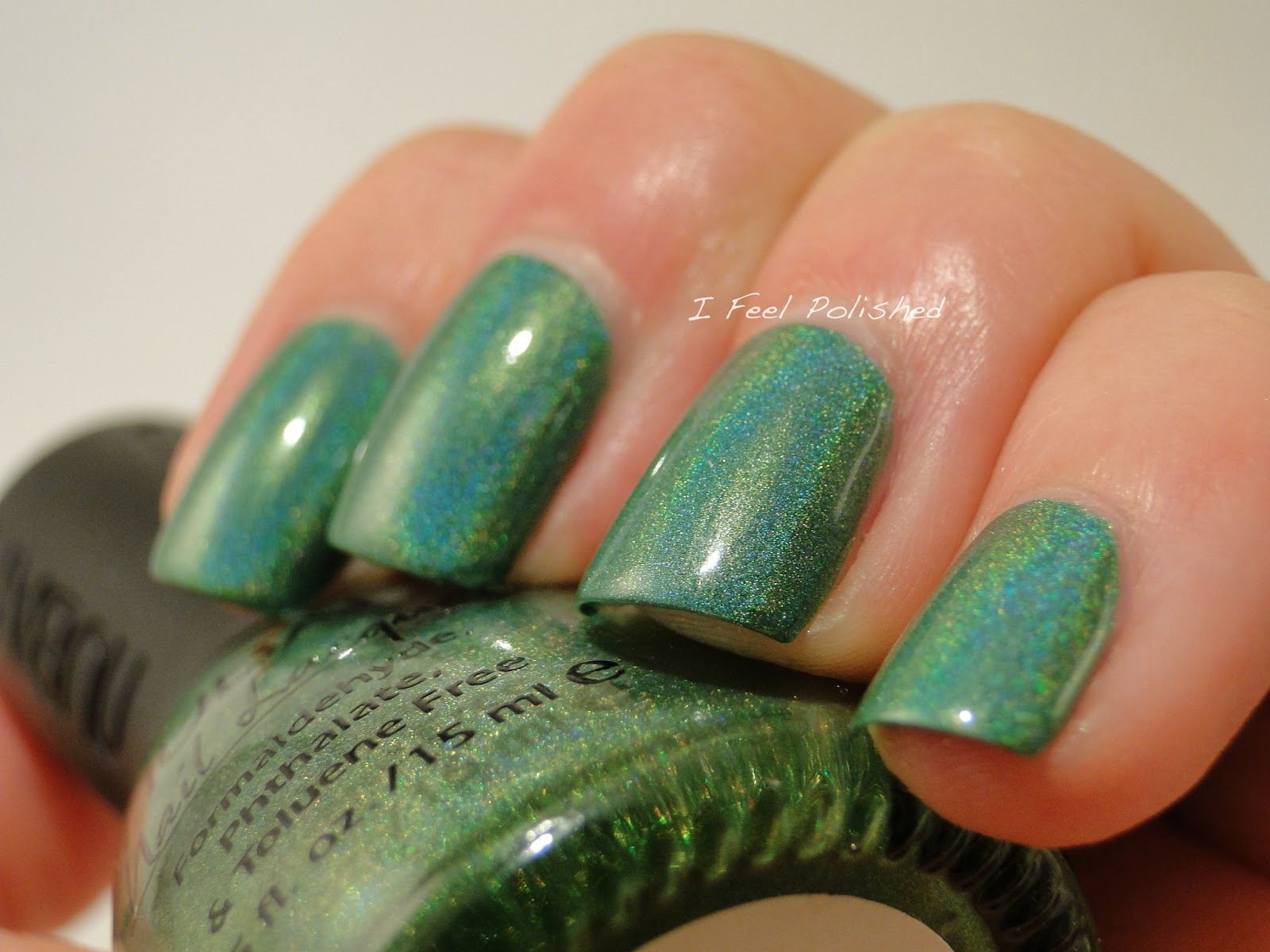 Onto my nails! I began with two coats of Nubar Reclaim, an awesome green holo: