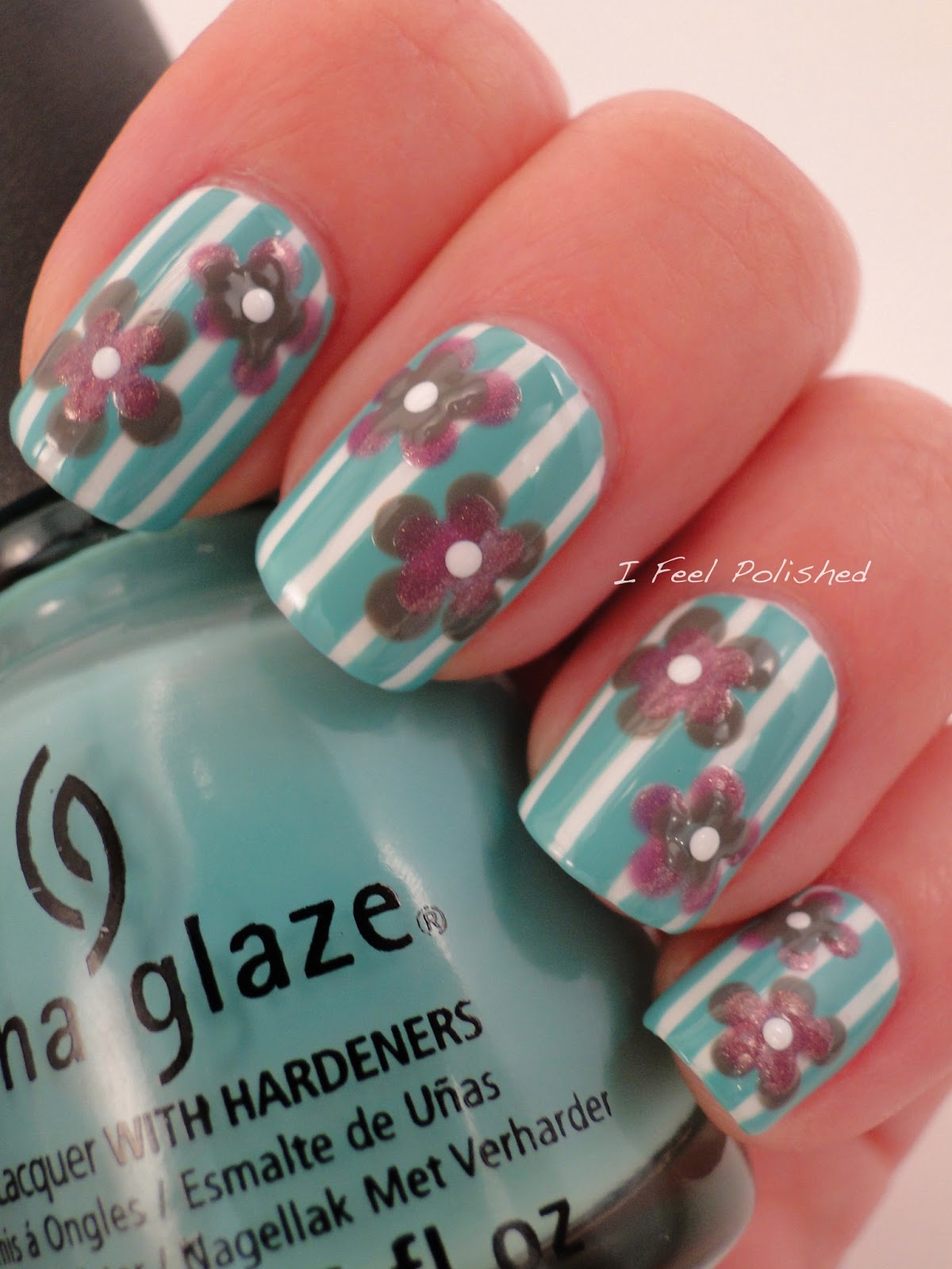 I am off a day, but this time it's on purpose! I have something else planned for tomorrow, so I did my favorite day recreation today! I decided to recreate the flower day because I just loved those modern flowers! This time I used Zoya Purity, China Glaze For Audrey, China Glaze Recycle, and Zoya Zara. Enjoy! :)
