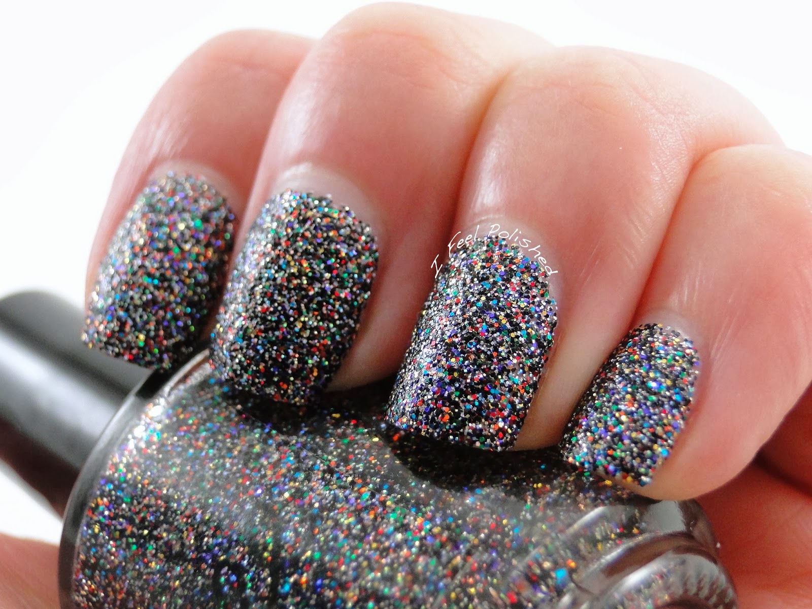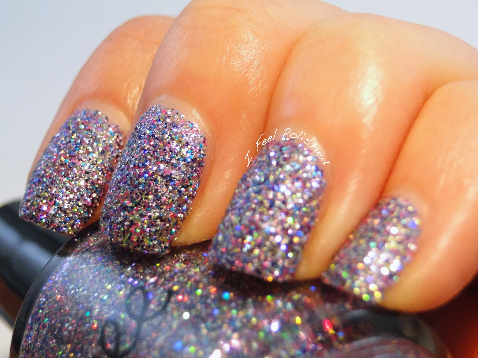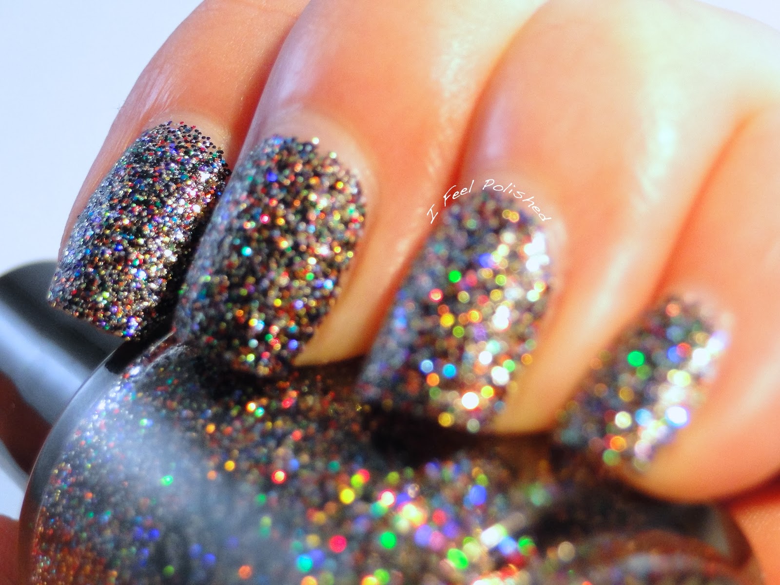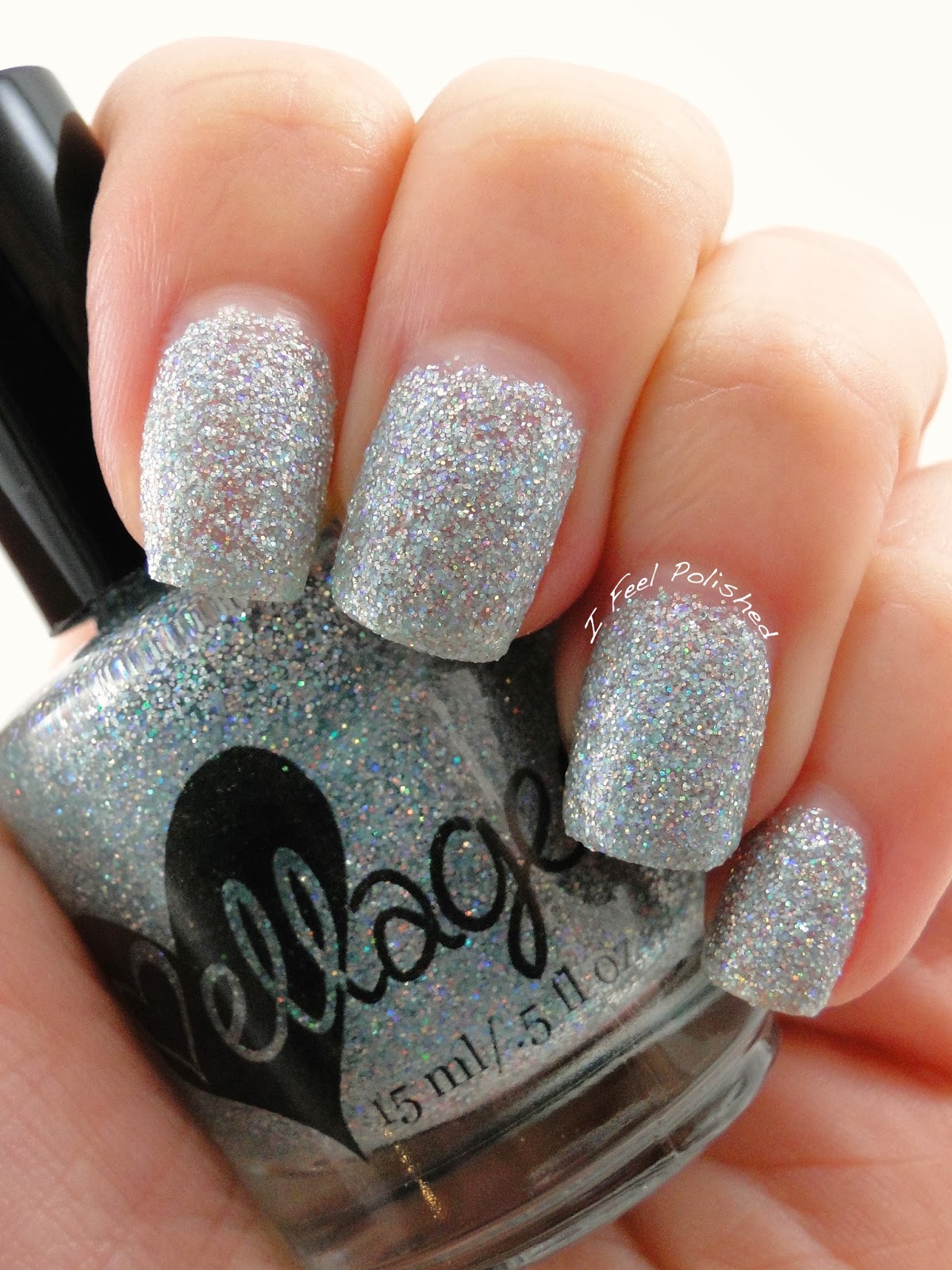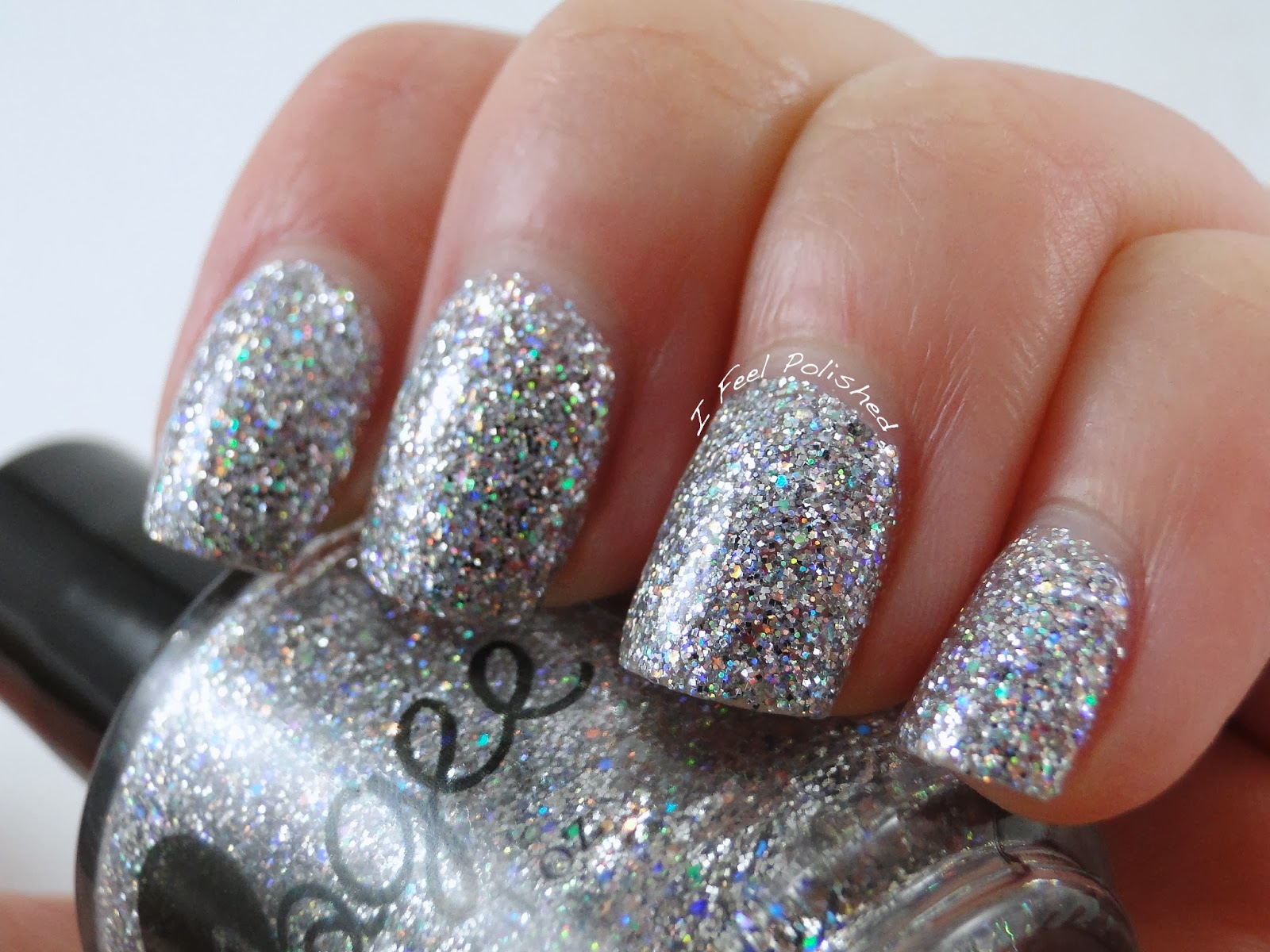 I began with two coats of ellagee's Lucy in the Sky, a gorgeous silver holo polish with fine silver holo glitter. Once Lucy was dry, I used Zoya Isla and Zoya Raven to create the distressed look. This is so easy to do. You basically wipe the brush on the neck of the bottle until you think you have no polish left. Then, you polish your nail with the nearly dry brush, which creates the distressed look you see below. Enjoy! :)