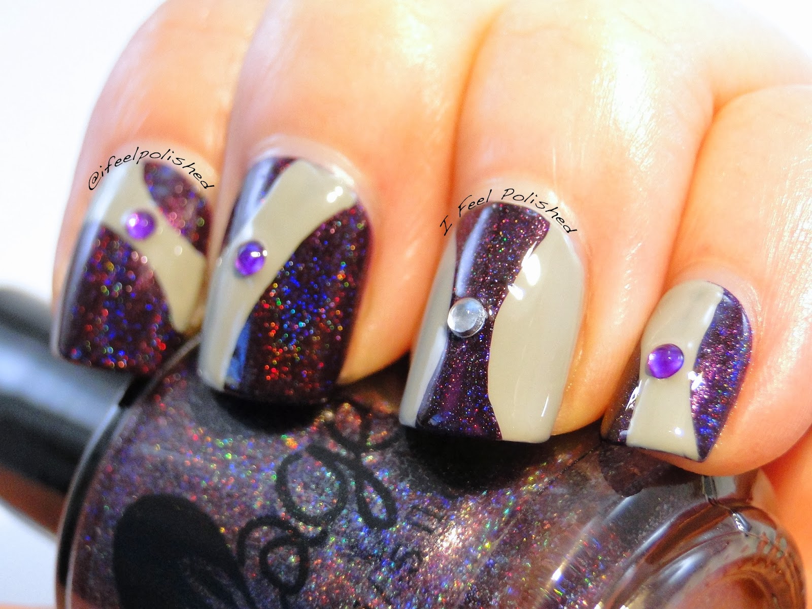 I began with two coats of ellagee's The Only Water in the Forest. Such a gorgeous turquoise polish with pink shimmer...I just love this one! I then used a large dotting tool to make purple dots going from darkest to lightest around the cuticle line of my nails. I first used Zoya Monica, the darkest purple. Next was Zoya Odette and finally, Zoya Heather. I love the optical illusion effect these seem to have! Enjoy! :)